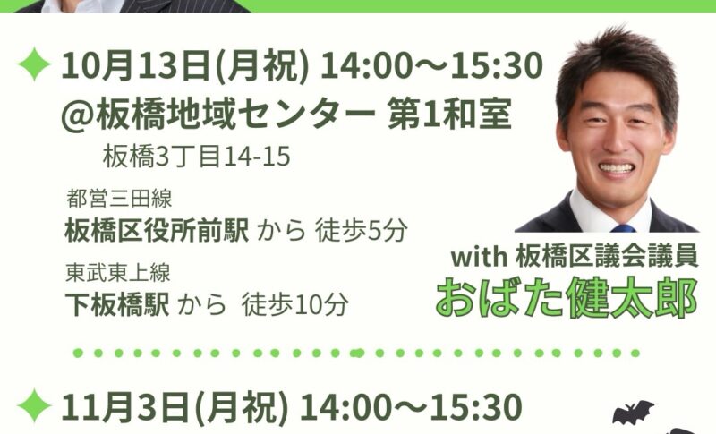 また、#おばた健太郎 区議も参加。地域の課題から「政権選択」に及ぶ話まで、皆様と率直に語り合いたいと思います。ぜひ、ご参加ください!