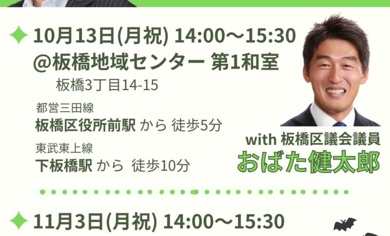 あくつ幸彦のタウンミーティングを #おばた健太郎 板橋区議と一緒に開催します。