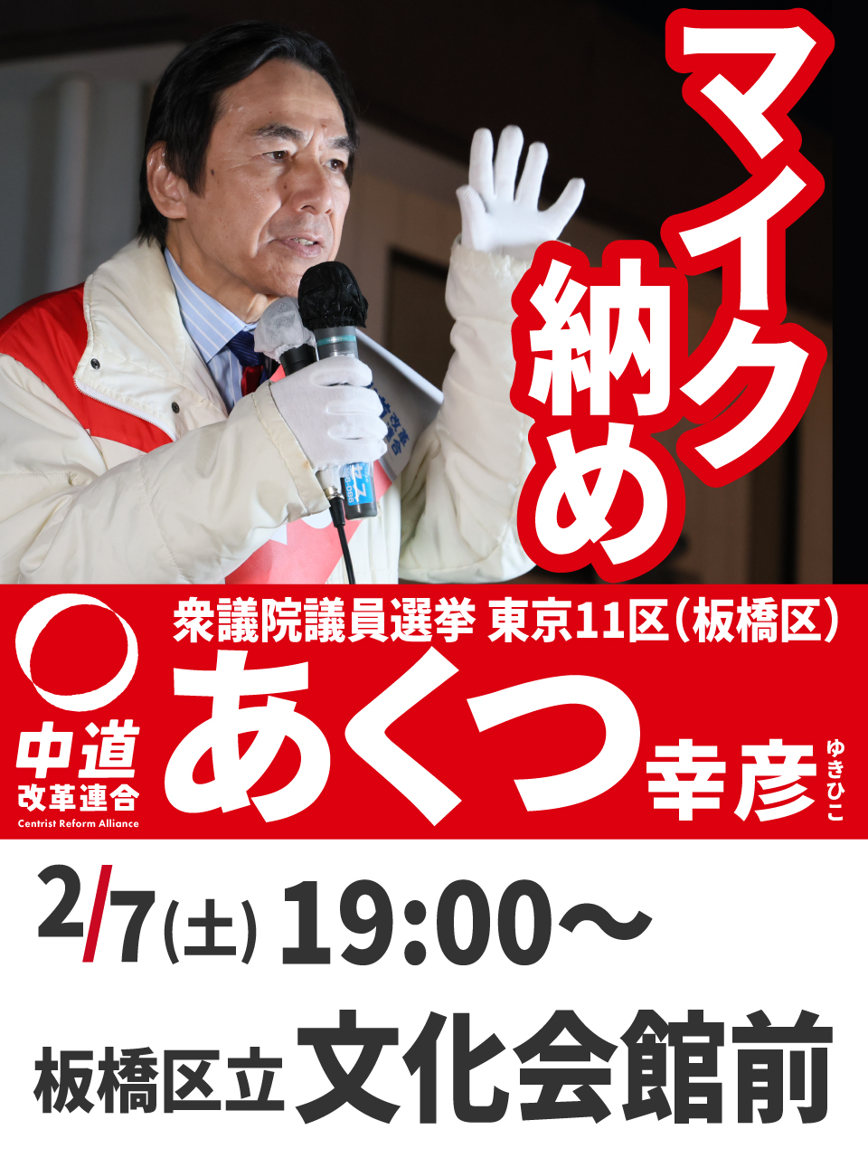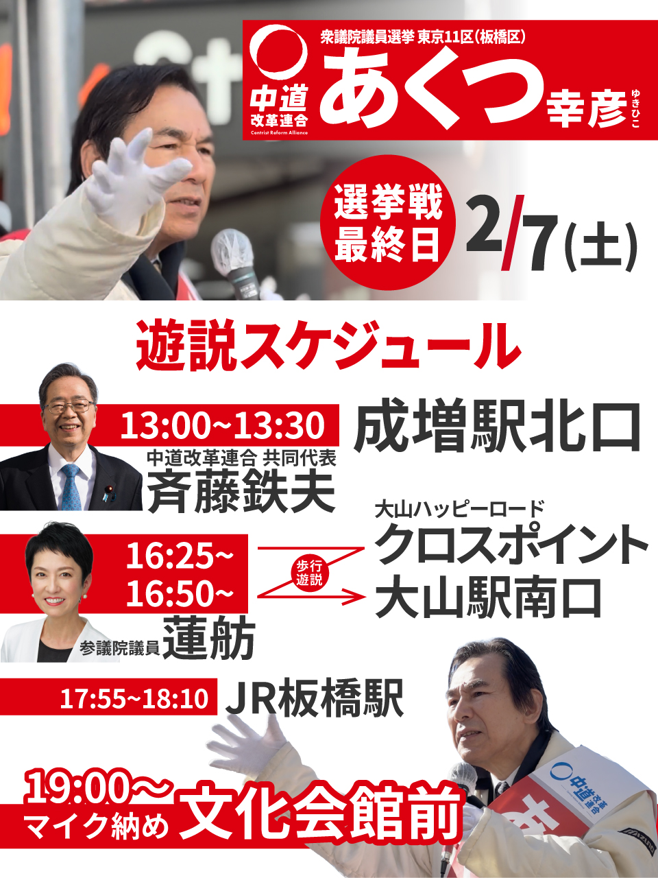 明日(2/7)、選挙戦最終日の予定をお知らせします。(スタッフ)
