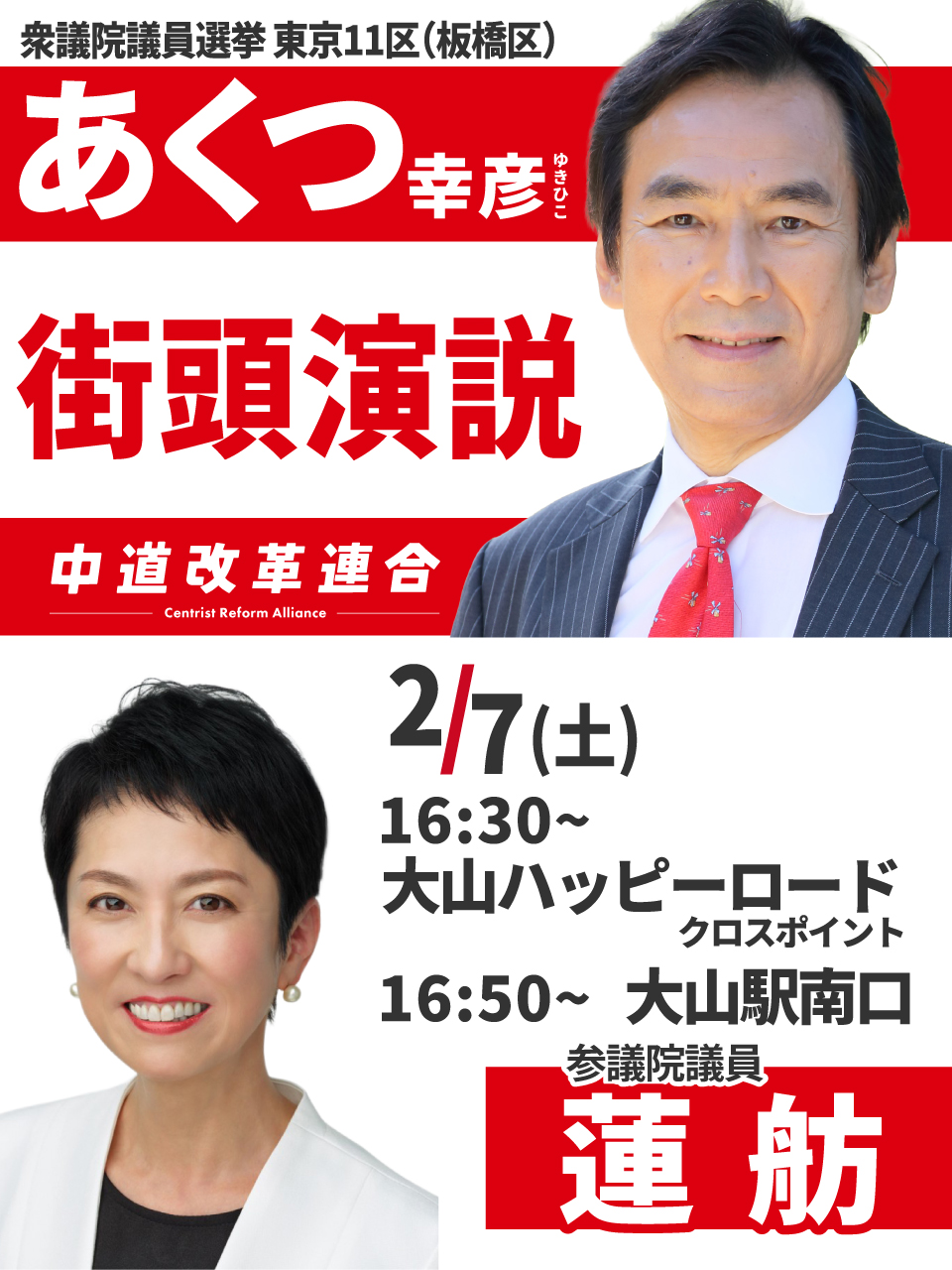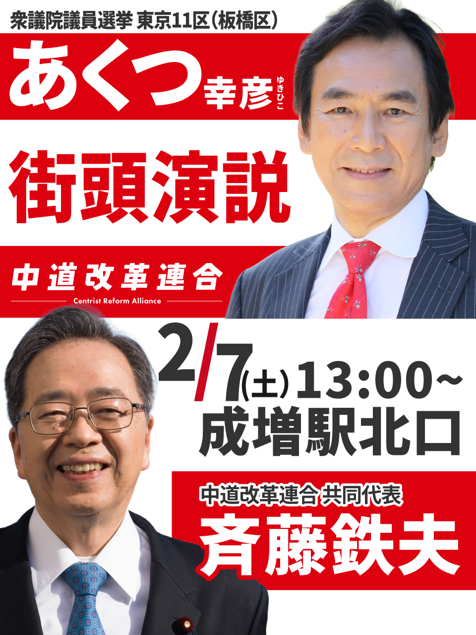 ・13:00〜13:30 成増駅北口 中道改革連合 共同代表斉藤鉄夫