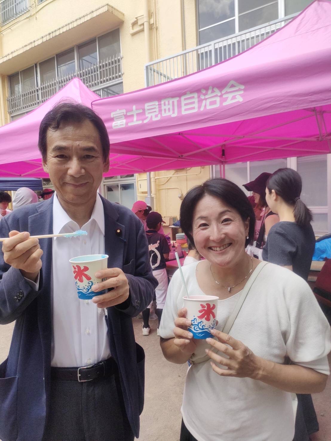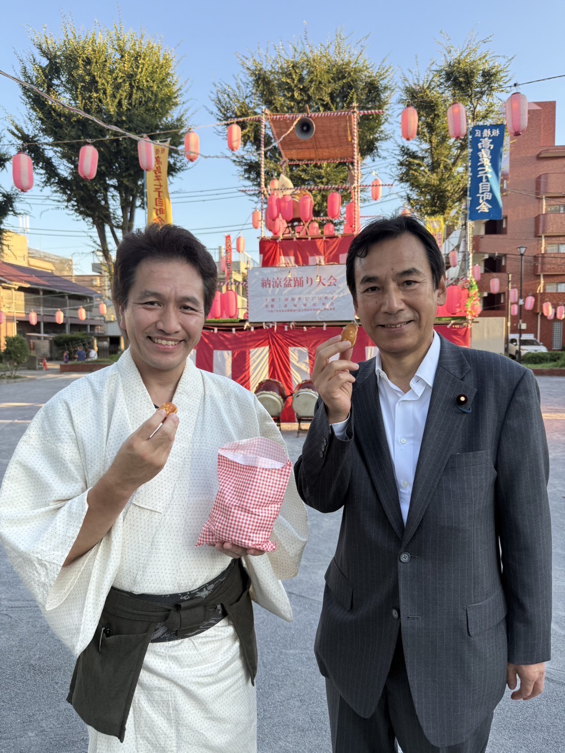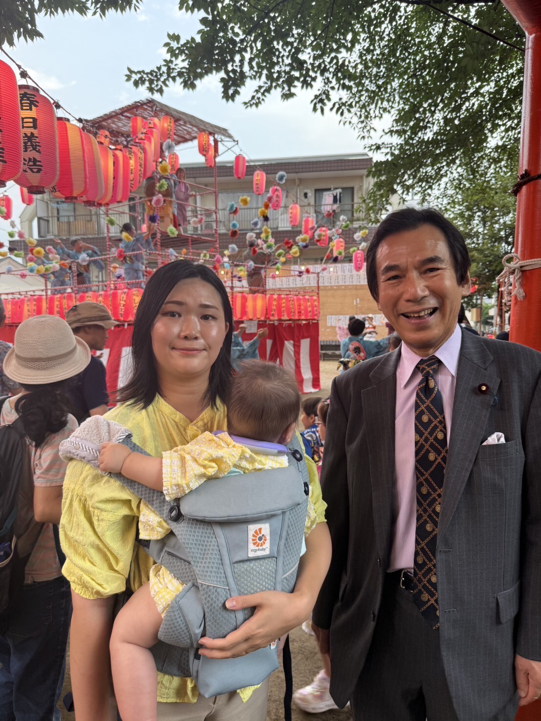 10ヶ所以上の盆踊りを #岩永きりん 区議、#おばた健太郎 区議、#おなだか勝 区議、#くまだ智子 区議、#宮瀬英治 都議と一緒に周りました。 今年は多くの地域のイベントに顔を出させて頂き、本当にありがとうございます。別日には、#中妻じょうた 区議と盆踊りへ。中妻区議の地元は高島平など東京11区外になっていますが、中妻さんには災害対策や広報等でいつもお世話になっています。引き続き連携を密にして活動するつもりです。 #岩永きりん 区議とパチリ。「孫」を見るような私の笑顔にご注目。 #くまだ智子 区議と大好きなカキ氷を頂きました。